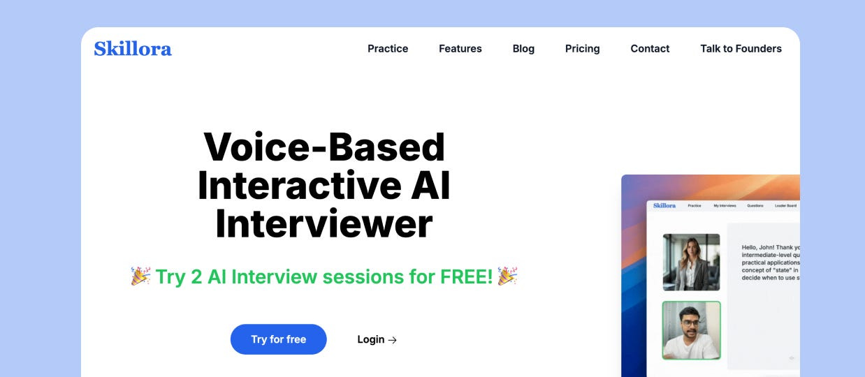 Practice mock interviews with voice-based AI and get instant feedback to improve.
